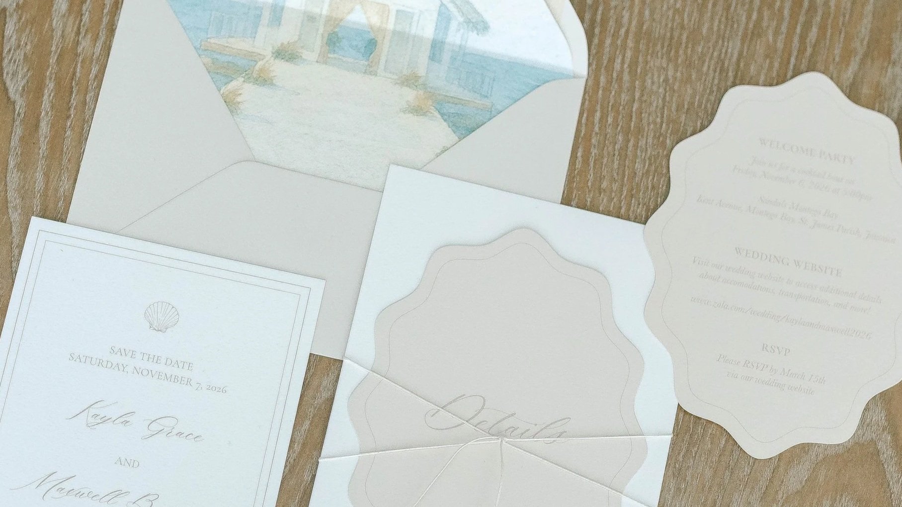 Premium enhancements — such as specialty printing, custom illustrations, and curated embellishments — are available to elevate your invitation and create a truly memorable keepsake.